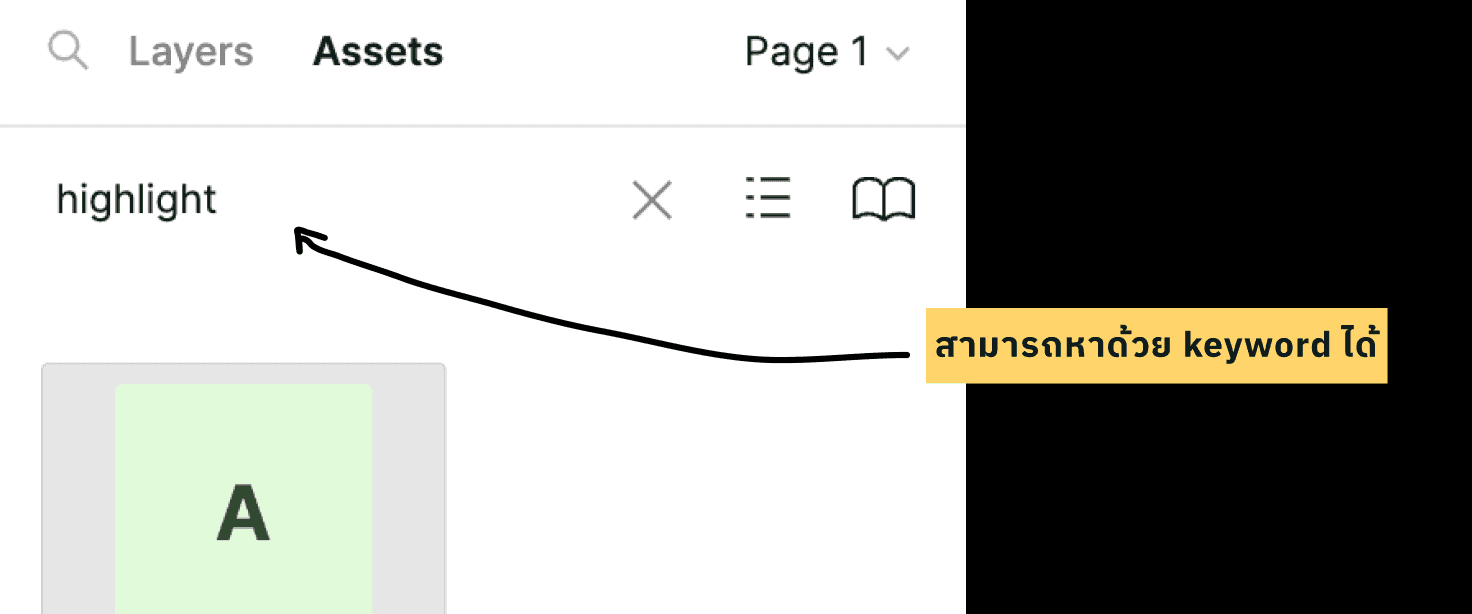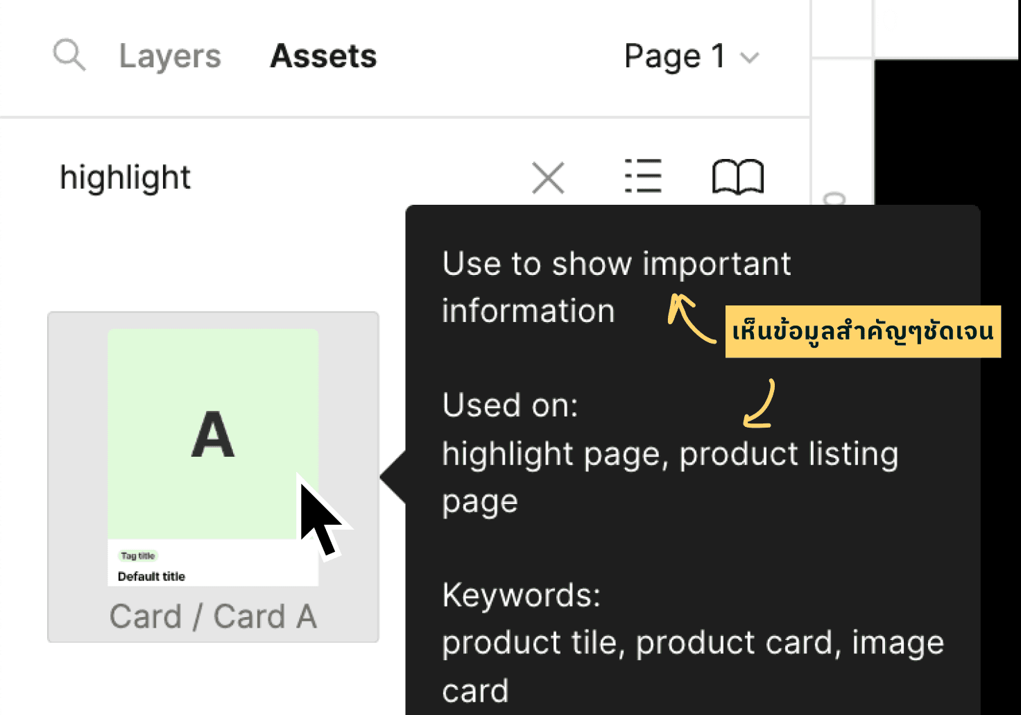 จากตัวอย่างข้างต้น ถ้าคนค้นหาด้วยคำว่า `text field` ก็จะเจอ component นี้ แม้ว่าชื่อของ component จะเป็น `Foundation / Input` ก็ตาม