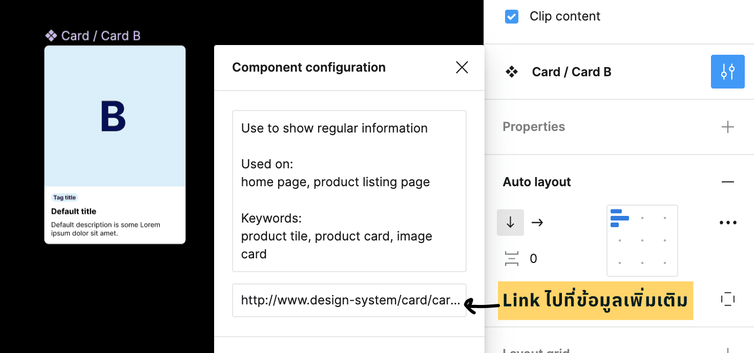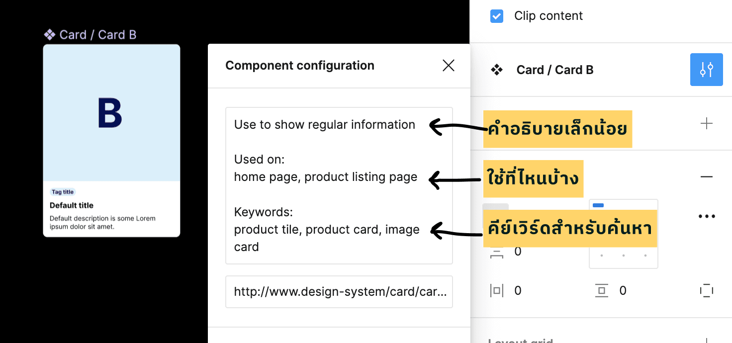 ✏️ Key idea 2: การใส่ description และ URL ของ component → ทำให้ component ถูกหาเจอง่ายขึ้น และ ถูกนำไปใช้ถูกจุดประสงค์ขึ้น