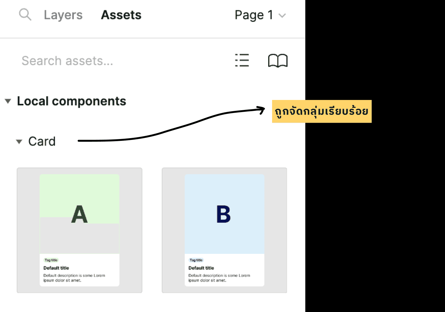 ตั้งชื่อด้วยรูปแบบ `Component group / Component name` → จะได้อ่านง่าย และมีการจัดกลุ่มที่ชัดเจน