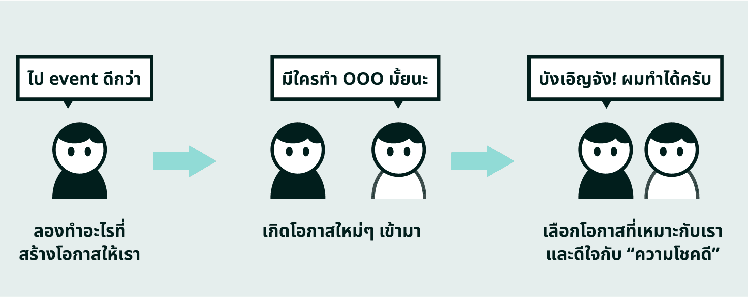 พฤติกรรมที่เหมาะสม → โอกาสที่เข้ามากมากขึ้น → รู้สึกว่าโชคดีเพราะเจอโอกาสที่ใช่กับตัวเอง