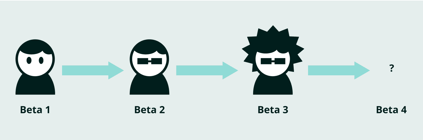 Beta = เวอร์ชั่นของซอฟท์แวร์ที่ถูกปล่อยออกเพื่อการทดสอบ (และนำผลลัพธ์ไปพัฒนา) ก่อนที่จะ release จริง