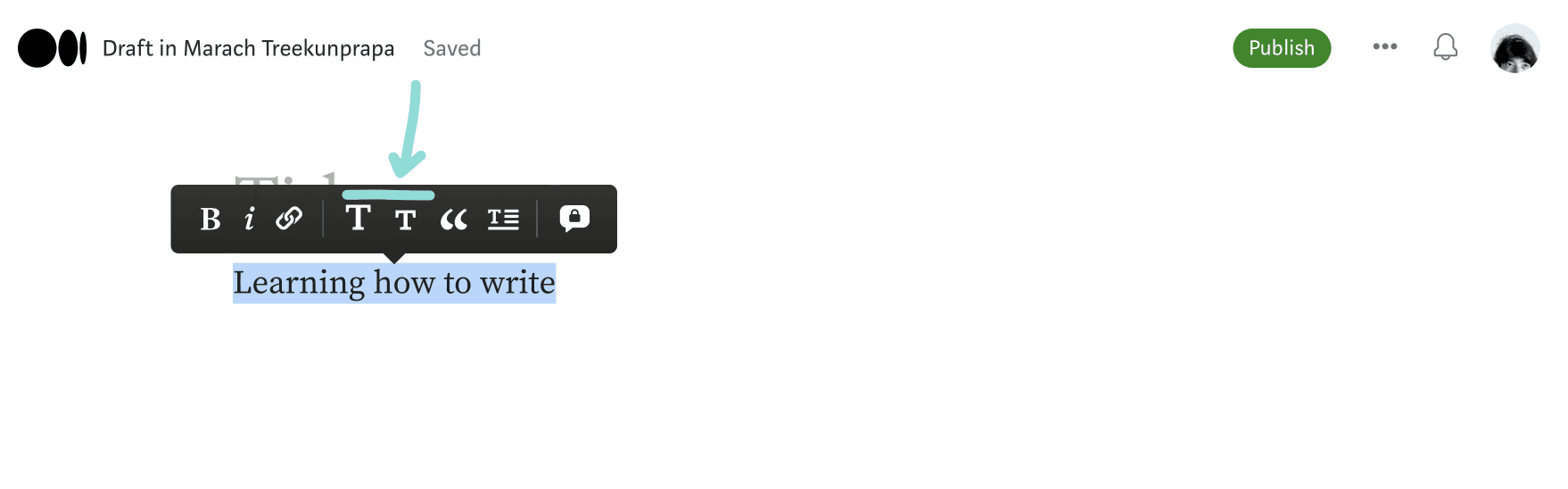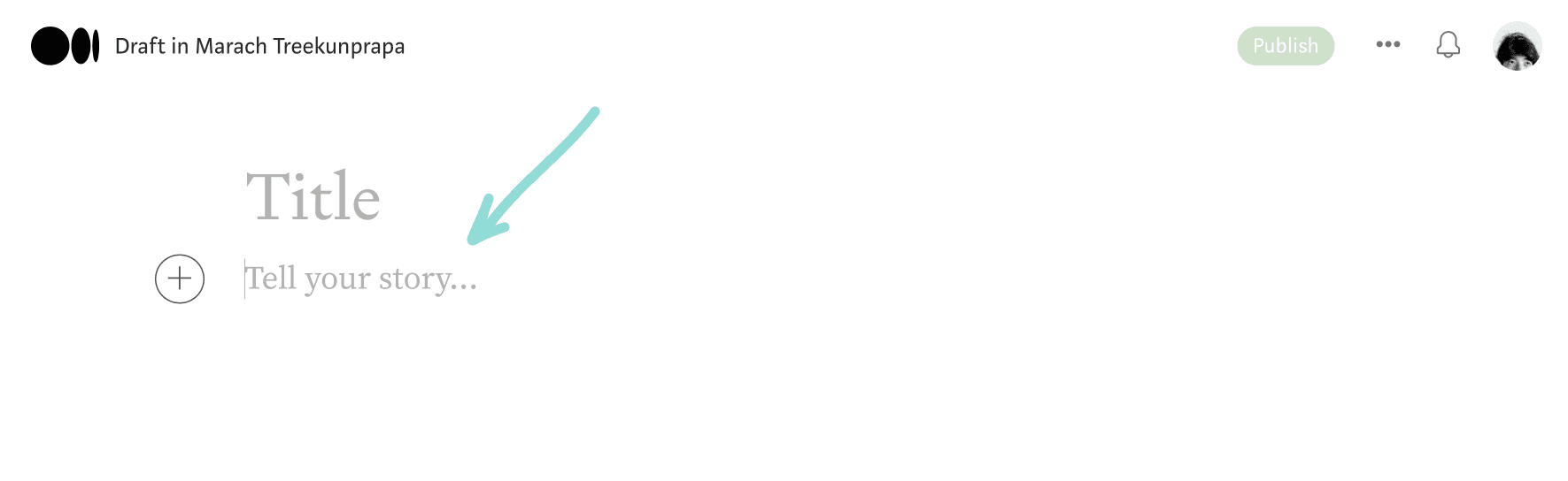 พออยู่ในโหมดเขียนก็คือซ่อนพวกเครื่องมือต่างๆให้โฟกัสกับการเขียน พร้อมกับชี้ให้ทำด้วยคำว่า Tell your story... (เน้นให้เริ่มเขียน!)