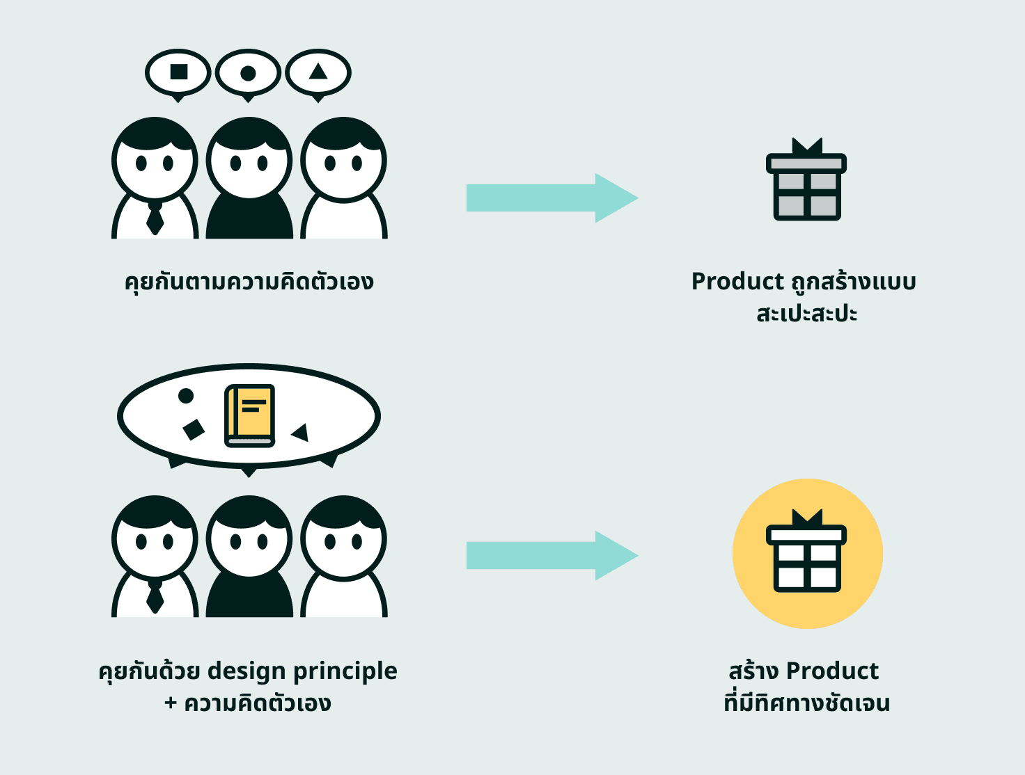 เมื่อทุกคนเห็นหลักการเดียวกัน = ทำงานด้วยกันง่าย + ตัดสินใจง่าย = product ไปในทิศทางที่บรรลุ vision ของ business